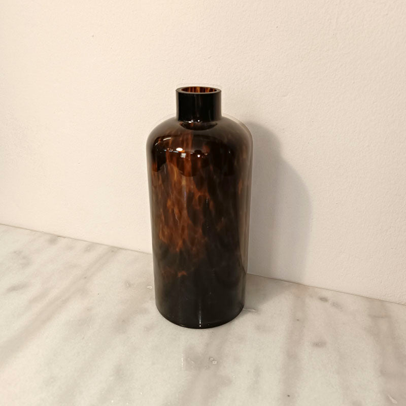 Glass bottle styled vase, finished with tortoise shell.